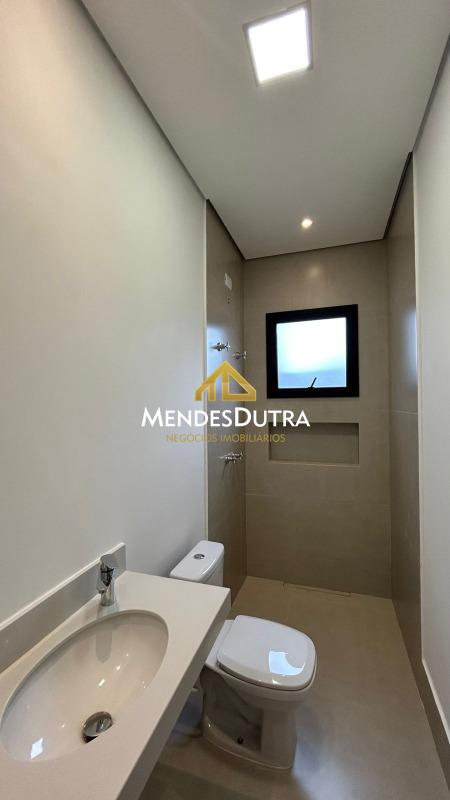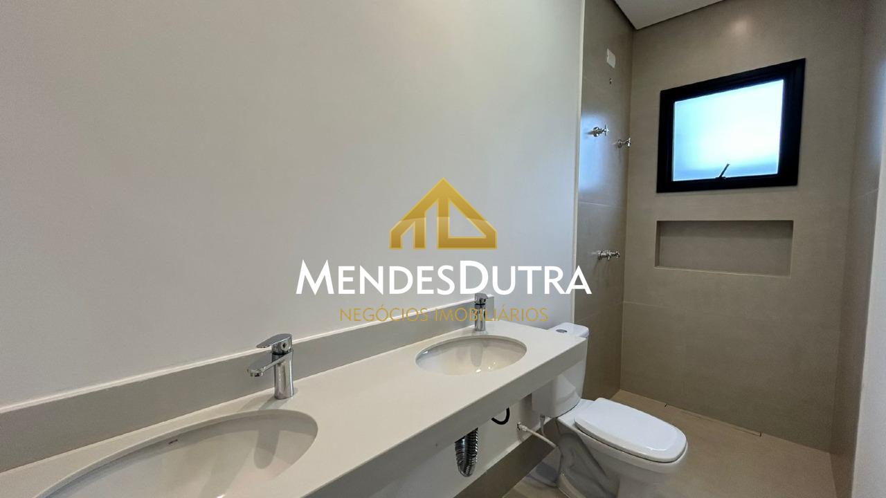 3 suítes (uma delas com closet), roupeiro no corredor e lavanderia. Sala para dois ambientes, lavabo, cozinha ampla com ilha e integrada à área gourmet. Piscina com churrasqueira e banheiro externo. Esquadrias automatizadas, porta de entrada com fechadura digital, preparação para aquecimento solar em todas as torneiras e piscina. Acabamento de ótima qualidade, piso vinílico na área íntima e paisagismo completo. Infraestrutura de ar-condicionado pronto para receber os aparelhos nos quartos, sala e cozinha. Vaga para 4 carro, 2 cobertas. Condomínio oferece excelente estrutura.