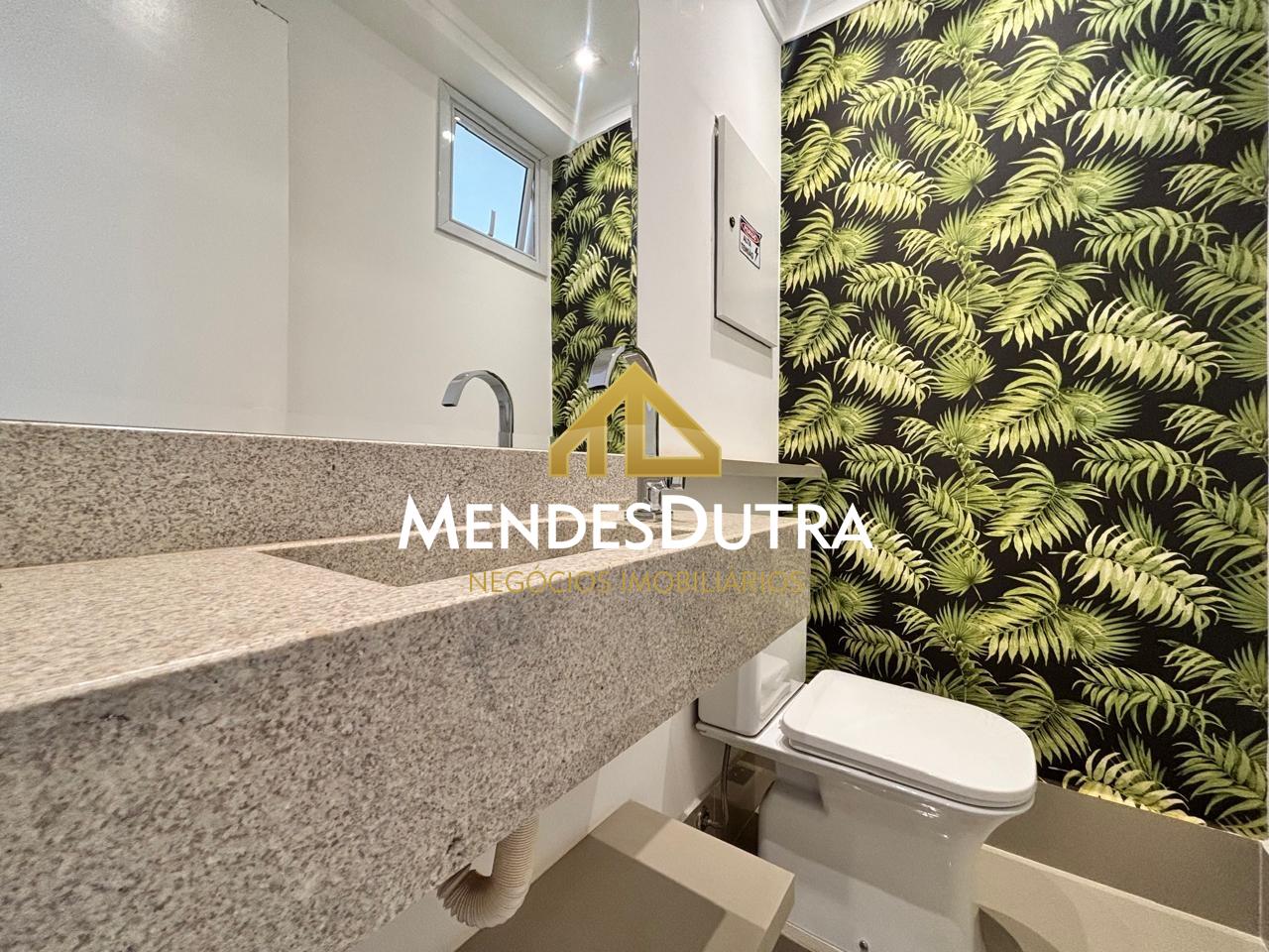 O apartamento possui ampla sala para 2 ambientes, lavabo, cozinha espaçosa e planejada, área de serviço com entrada independente com lavanderia ampla, despensa e banheiro. Ainda no primeiro piso, 2 suítes com armários e ar condicionado e elevador.